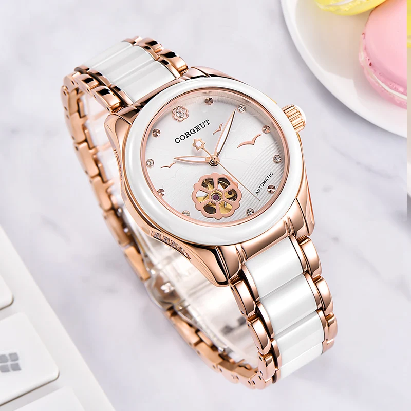 Big Deal Corgeut 34mm Watch women Rose Gold Ceramic Automatic mechanical wristwatches reloj mujer Miyota 821